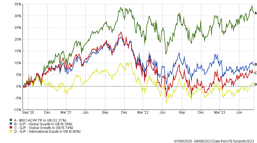 Three of those funds – the £11.5bn SJP Global Quality, the £7.5bn SJP Global Growth and the £7.1bn SJP International Equity – are to be found in the global sector, which has 24 dog funds overall and accounts for three-quarters of the total dog funds by asset.