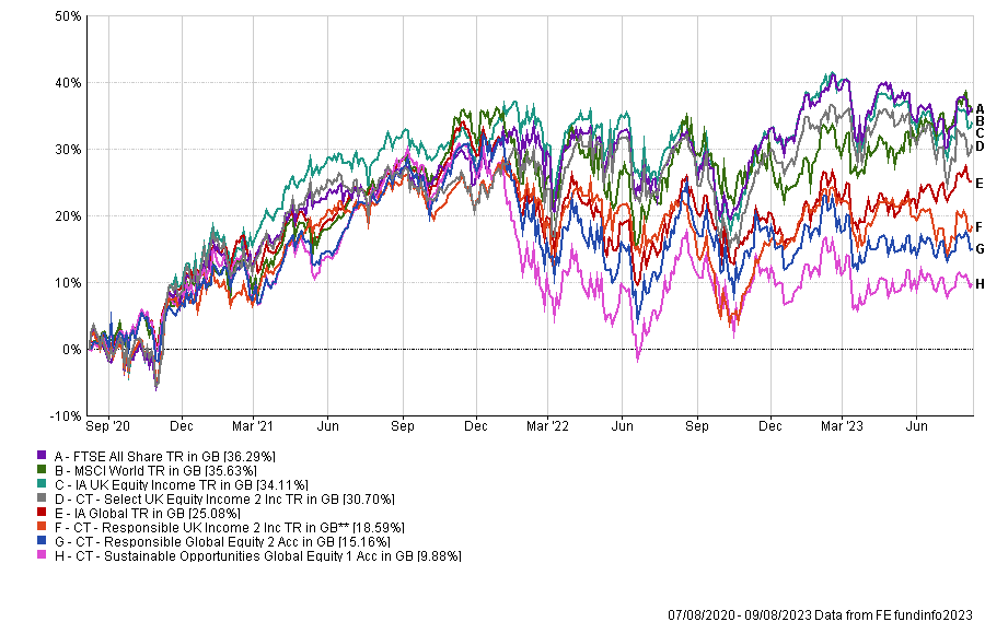 Columbia Threadneedle has four funds on this year’s list, worth £1.9bn – CT Responsible Global Equity, CT Responsible UK Income, CT Sustainable Opportunities Global Equity and CT Select UK Equity Income.