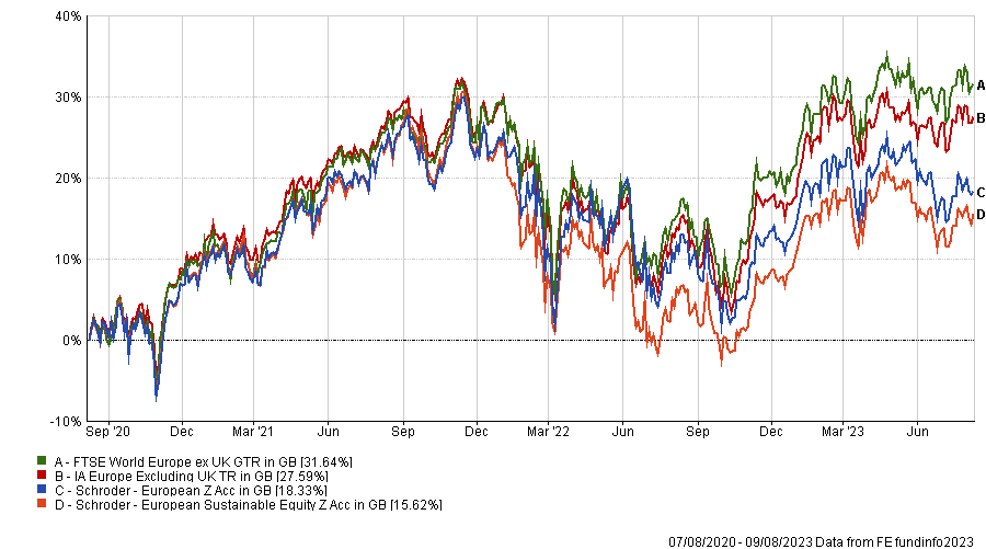 Schroders had some issues in its own-brand fund range with two dog funds in its European franchise – Schroder European and Schroder European Sustainable Equity. Yet, Schroder European Alpha Plus has fallen off the list this time around.
