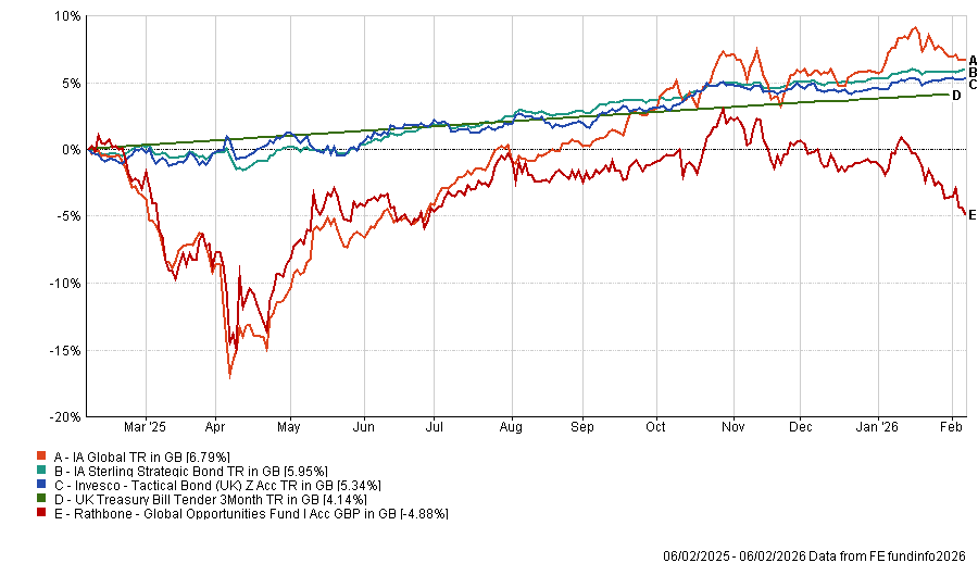 Managed by Alpha Manager James Thomson, Rathbone Global Opportunities can swing when sentiment deteriorates; for example, in the year to 31 January 2022, it fell 5.3% as global markets sold off, while it was down again in the year to January 2026, losing 3.2%.