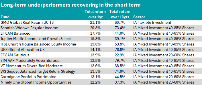 While these long-term outperformers struggled last year, other funds saw something of a resurgence in 2025, with some of the strongest one-year returns across the multi-asset sectors coming from GMO Global Real Return UCITS, Scottish Widows Regular Income and EF 8AM Balanced.