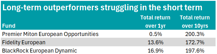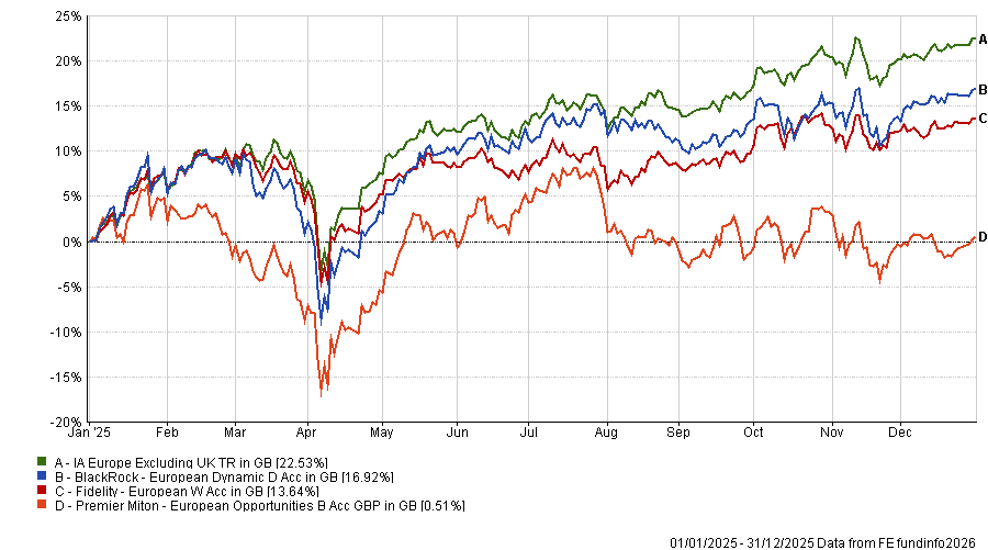 It was Premier Miton European Opportunities that delivered the weakest return of the three funds in 2025, gaining just 0.5% – although its return over 10 years is strongest at over 200%.