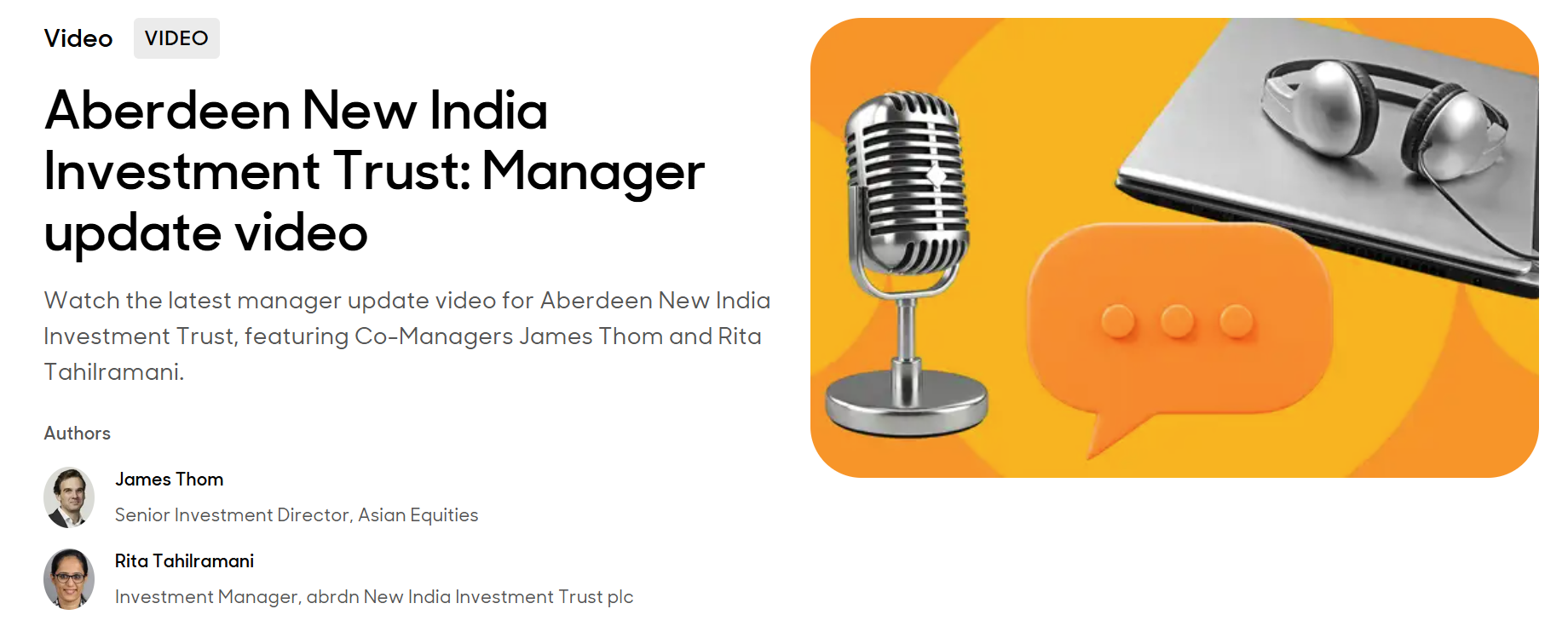 Watch the latest manager update video for Aberdeen New India Investment Trust, featuring Co‑Managers James Thom and Rita Tahilramani.