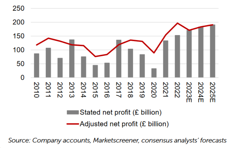 Net income on an adjusted basis is expected to hit £171bn in 2023, which is 13% less than the all-time high of £197bn reached last year.