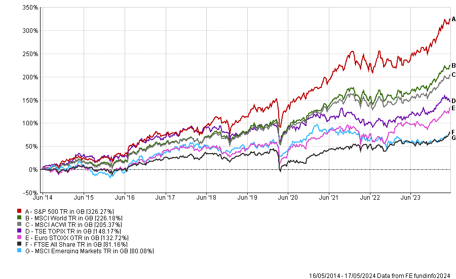 The benchmark has hardly been a demanding one. Indeed, the FTSE All Share index – which was used in this study – has been one of the worst performing markets globally over 10 years, as the below chart shows.