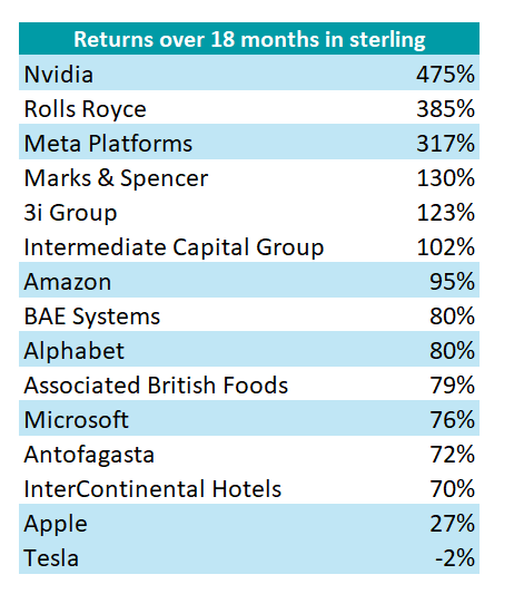 The Magnificent Seven have dominated headlines, so it may come as a surprise that a handful of British companies have delivered returns close to, or even exceeding several of the American tech behemoths over the past 18 months, whilst trading on far lower multiples.