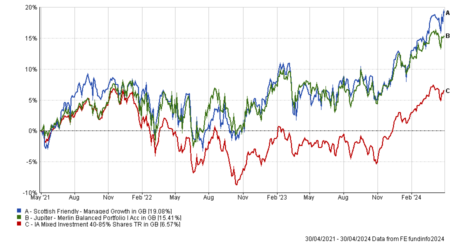 Unlike in the IA Flexible Investment sector, Chatfeild-Roberts is not the only veteran manager to have shined over the past three years, as Colin McLean – who has been at the helm of Scottish Friendly Managed Growth since June 2004 – is also on a hot streak over the past three years.