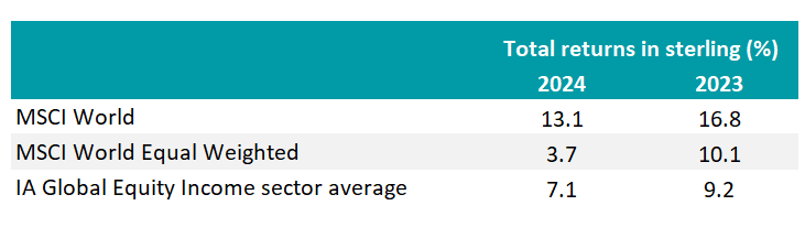 The MSCI World has risen 13.1% this year to 26 June in sterling terms. However, the MSCI World Equal Weighted index only gained 3.7%, which shows how the largest stocks have delivered a disproportionate share of performance. “It’s really unusual to see this level of dispersion,” Knoedler observed.