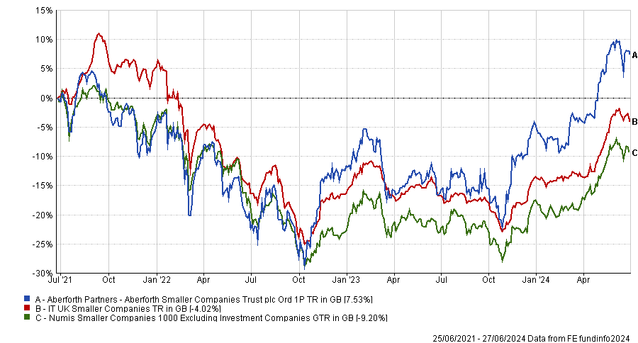 But the manager maintained his conviction in this space and his first pick here was Aberforth Smaller Companies.