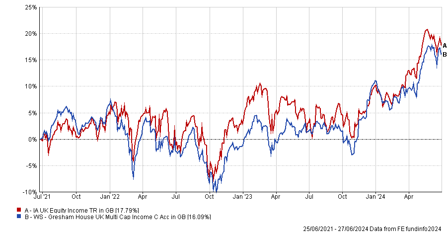 The first fund Mackie highlighted was WS Gresham House UK Multi Cap Income.