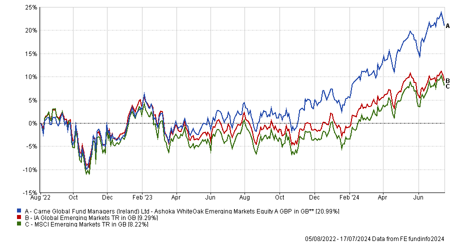The fund is relatively new, having been launched in 2022, building on the success of Ashoka India Equity, and is also available as an investment trust.