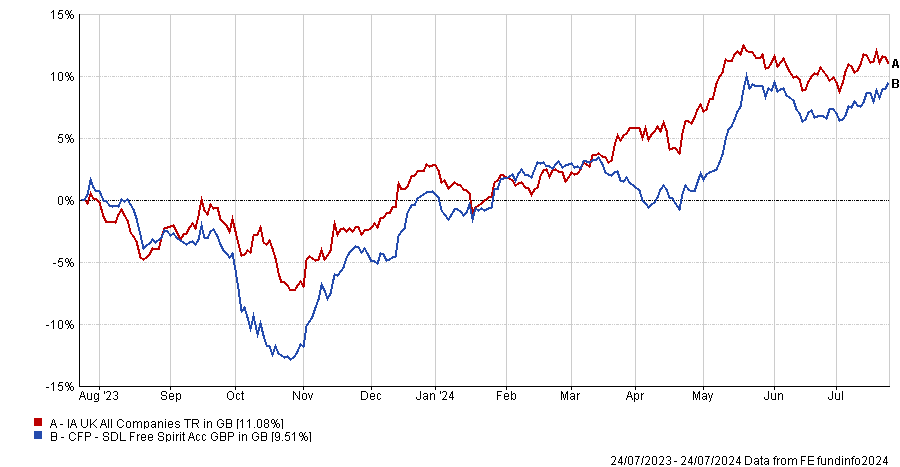Over the very short term, Free Spirit has re-emerged from the third performance quartile of performance against the IA UK All Companies sector over the past six months to the second quartile, which it maintained over three and one month, but it might be too soon to extrapolate from that.