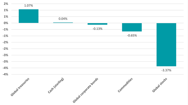 Emerging markets tended come off worse than developed markets, although Brazil and China – which have been sold down heavily recently – escaped with muted losses. The FTSE All Share lost 2.2%.