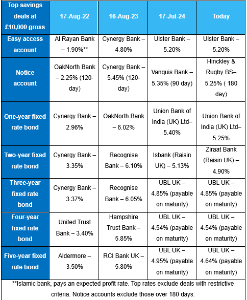 Longer-term rates have suffered the most, while shorter-term savers are continuing to be incentivised with higher top rates, despite some drops.