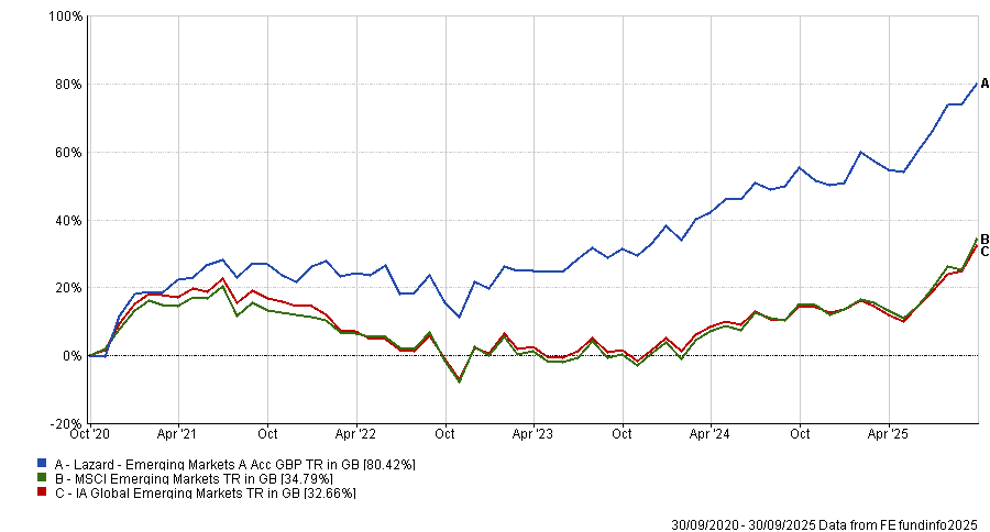 It was one of 12 funds in the IA Global Emerging Markets sector to make strong returns despite higher fees of more than 1%, according to data from FE Analytics.