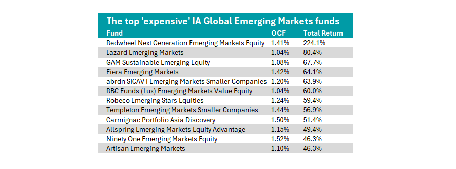 Other high-cost emerging market strategies to deliver strong returns despite high costs include the GAM Sustainable Emerging Equity strategy, the abrdn SICAV Emerging Markets Smaller Companies strategy and the Fiera Emerging Markets strategy, among others.
