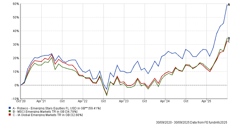It has been the third-best fund in the sector this year, with the managers attributing this to their top-down decision-making, including underweighting India and Taiwan and overweighting Brazil and South Africa, which paid off particularly in August.