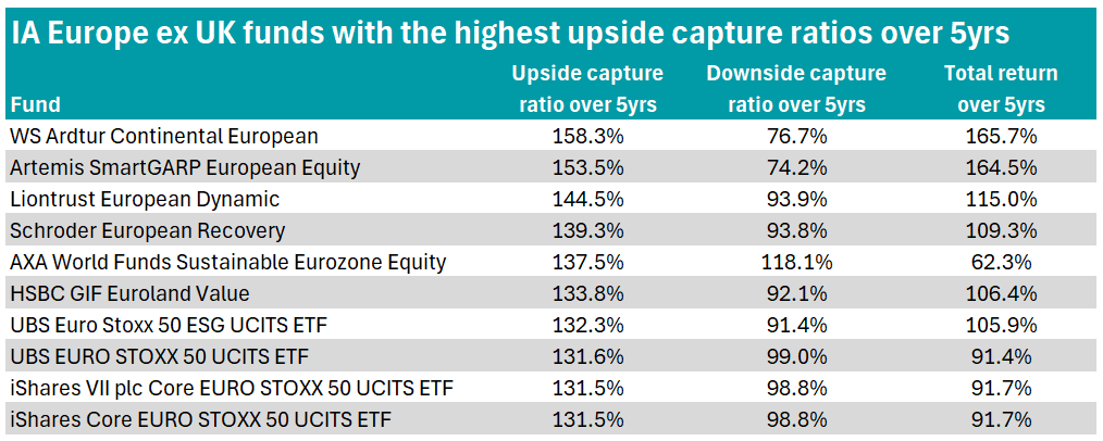 Next in line was Liontrust European Dynamic, which managed an upside capture ratio of 144.5%.