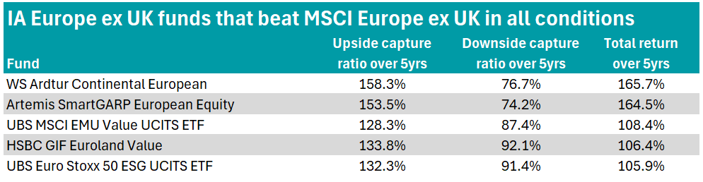As part of an ongoing series, Trustnet identified funds in the IA Europe ex UK sector that managed the best upside and downside capture ratios and returns over the past five years. Scores were calculated against the MSCI Europe ex UK index.