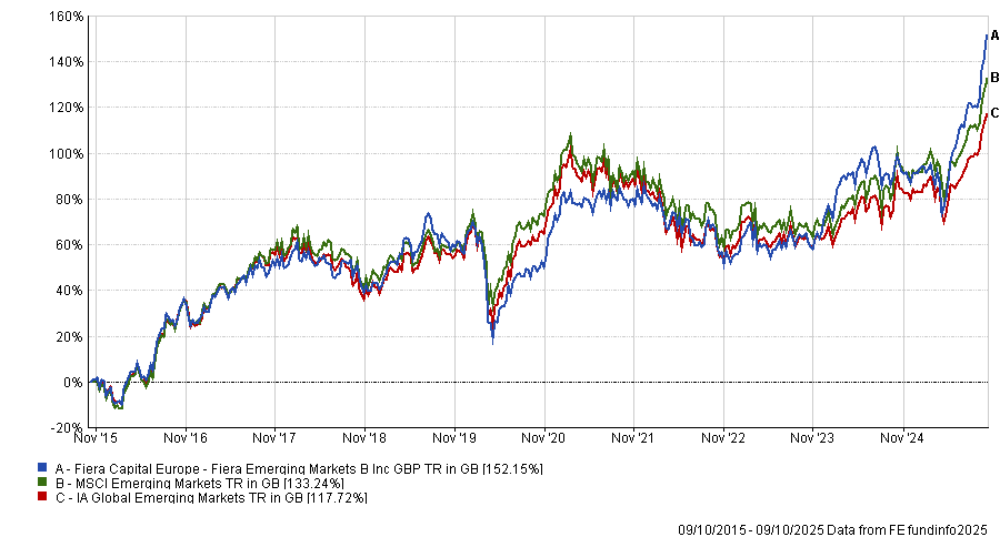 Simmons runs the top-performing Fiera Emerging Markets fund alongside deputy managers Stefan Bottcher and FE fundinfo Alpha Manager Dominic Bokor-Ingram.