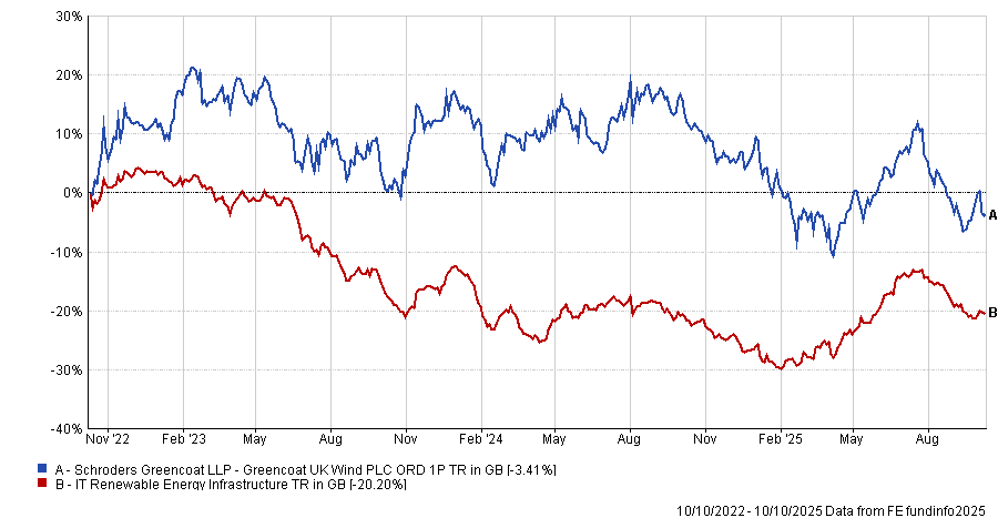 The £2.3bn investment trust invests solely in operating onshore and offshore UK wind farms that are currently producing income, which Marshall said “means it offers something very different from most other funds or investment trusts that provide a more core approach”.