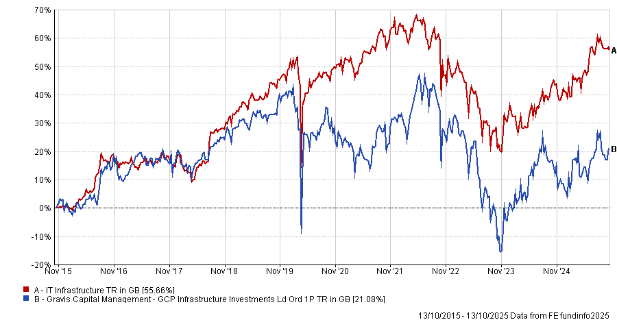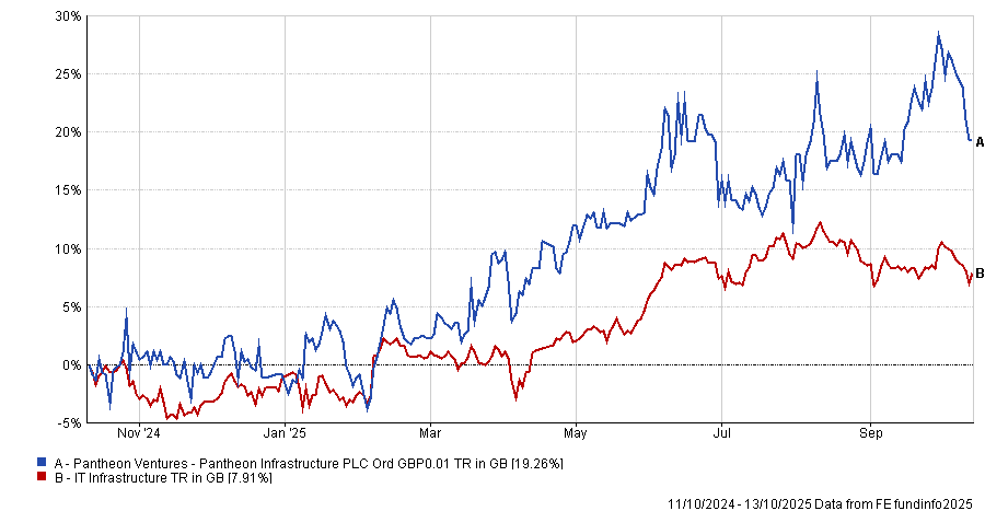 This approach has paid off for Pantheon Infrastructure. Over the past year, it is up 19.3%, the best performance in the IT infrastructure sector. Since its launch four years ago it has nearly tripled investors' money.
