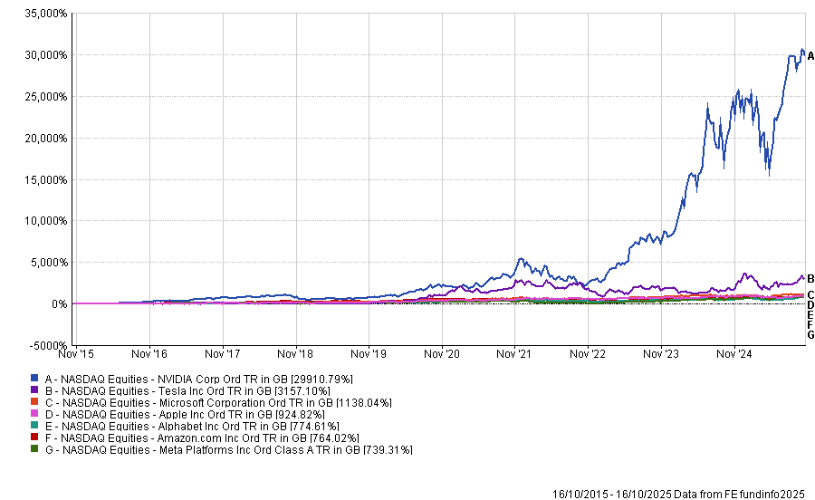 Raheel Altaf, Alpha Manager of the Artemis SmartGARP Global Equity noted that these stocks have also produced “truly exceptional returns in the past decade”, with Meta’s 739% return the lowest total return posted by a member of this cohort over the past 10 years, as data from FE Analytics shows.