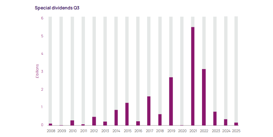 It expects special dividends in the final quarter of the year to stand at just £100m, taking the total for 2025 to £2.5bn, less than half the £5.2bn paid out in 2024.