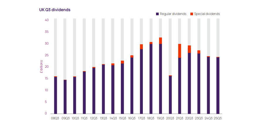 UK companies paid out £24.6bn to shareholders in dividends in the third quarter of 2025, down 1.4% on the same period last year, with analysts at Computershare now expecting income investors to be worse off by the end of 2025 than initially feared.