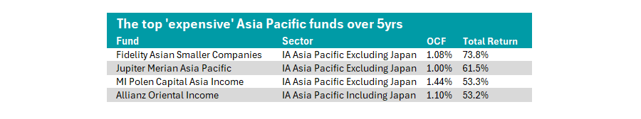 Just four Asia-Pacific funds with a high ongoing charge figure (OCF) have delivered top-quartile returns over the past five years, according to recent research from Trustnet.