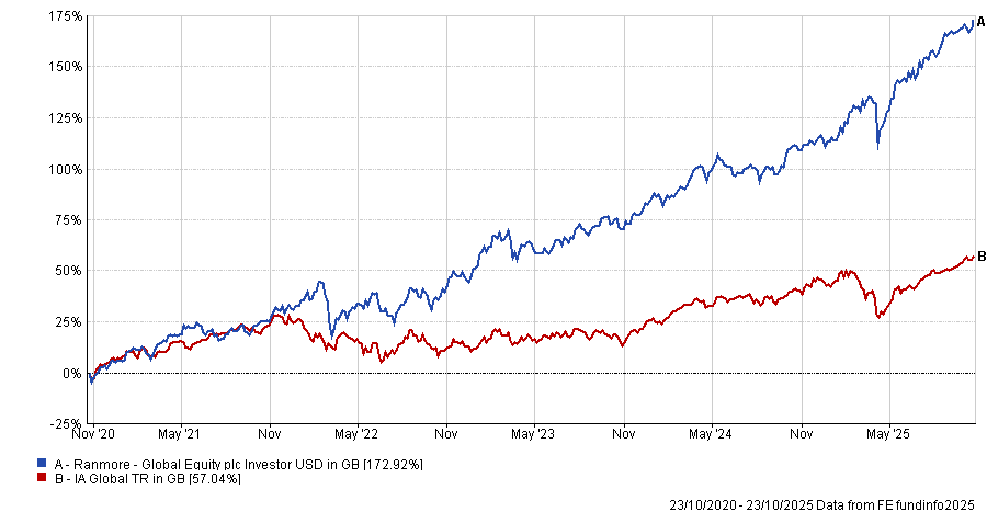 Ranmore Global Equity topped the table with an information ratio score of 0.7 over five years, paired with a total return of 172.1%.