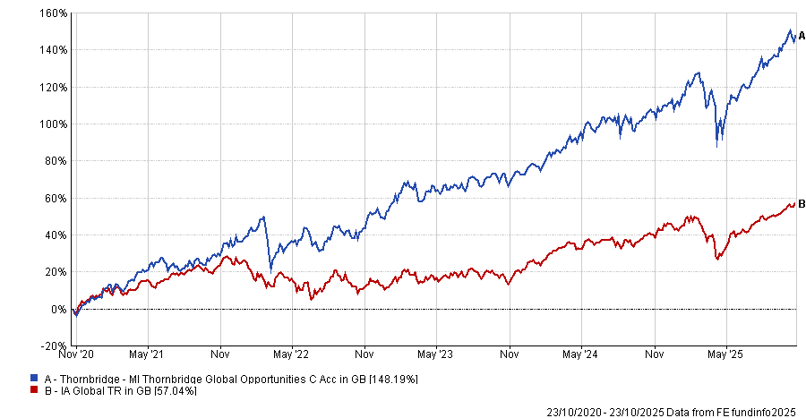 Meanwhile, MI Thornbridge Global Opportunities managed an information ratio score of 0.6. The £395.3m fund has been managed by Robert Oellermann since 2022. Before that, Anthony Eaton had been managing the fund since 2005 – originally under JM Finn before it was sold to Thornbridge.