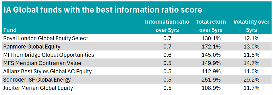 From Royal London to Thornbridge, these IA Global funds delivered the highest information ratio score.