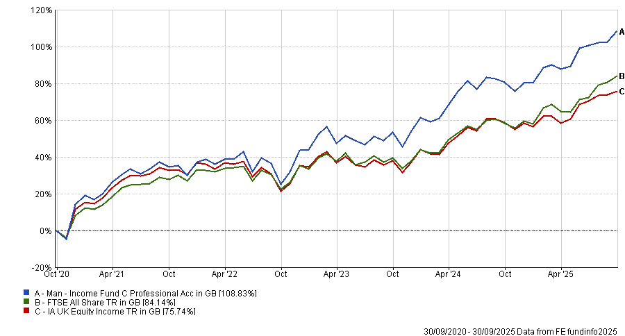 Income investors may also be drawn to the Man Income fund, which is yielding 5% and has a strong track record, making a total return of 108.8% over the past five years.