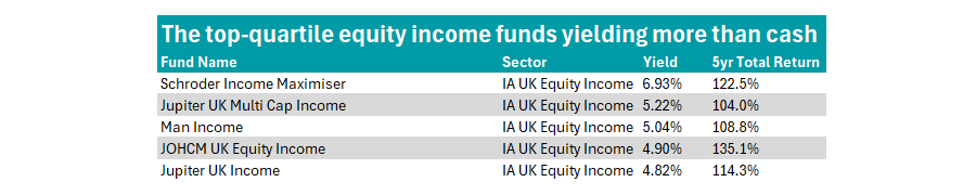 Just five equity income funds have paired top-quartile total returns with a yield above cash, a recent Trustnet study has found.