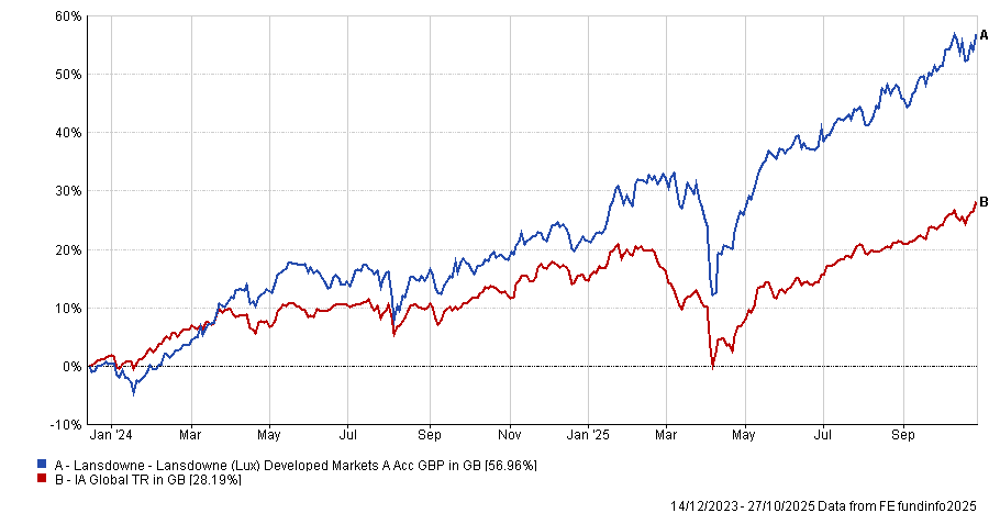 This has worked wonders for his portfolio, which forms part of the asset manager's much larger Lansdowne Developed Markets Strategy. Lansdowne (Lux) Developed Markets has got off to a storming start since its launch in 2023, making a 57% return, the 12th best in the IA Global peer group.