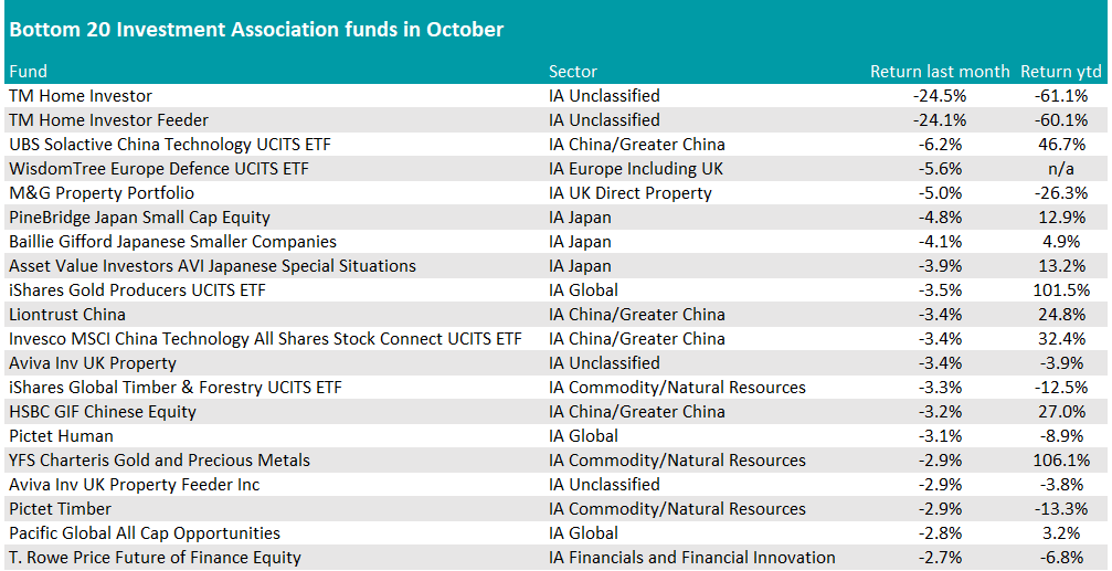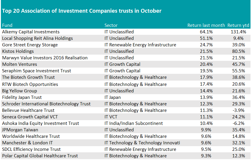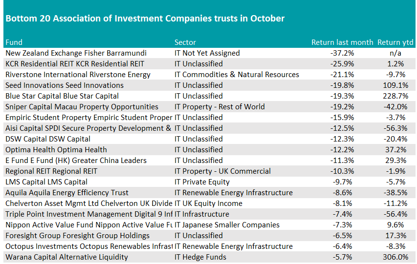 The best and worst funds and trusts in October | Trustnet Skip to the content