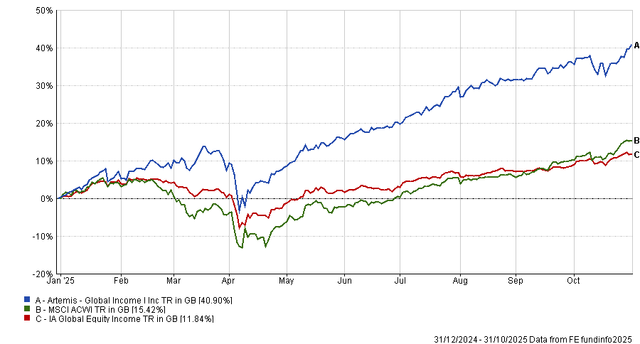 Led by veteran investors Jacob de Tusch-Lec and James Davidson, Artemis Global Income is the best-performing portfolio in the IA Global Equity Income sector so far this year, up 40.9%.