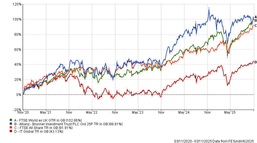 He first allocated 15% to the £606.3m AIC Dividend Hero Brunner Investment Trust, describing it as a “global, all-weather equity portfolio with a unique balance across quality, growth and value”.