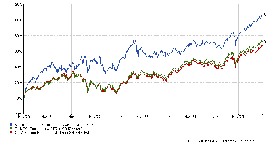 Meanwhile, WS Lightman European – also with £1.3bn in assets under management – is a concentrated portfolio of between 40 and 50 European holdings which managers Rob Burnett and George Boyd-Bowman believe are undervalued with positive operational momentum.