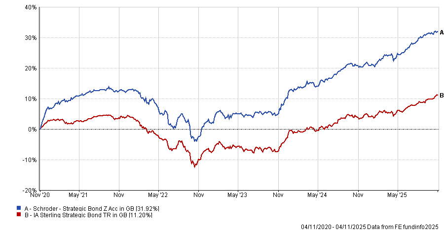 Owning this strategy has paid off in recent years, with top-quartile returns in the IA Sterling Strategic Bond sector over one, three and five years.
