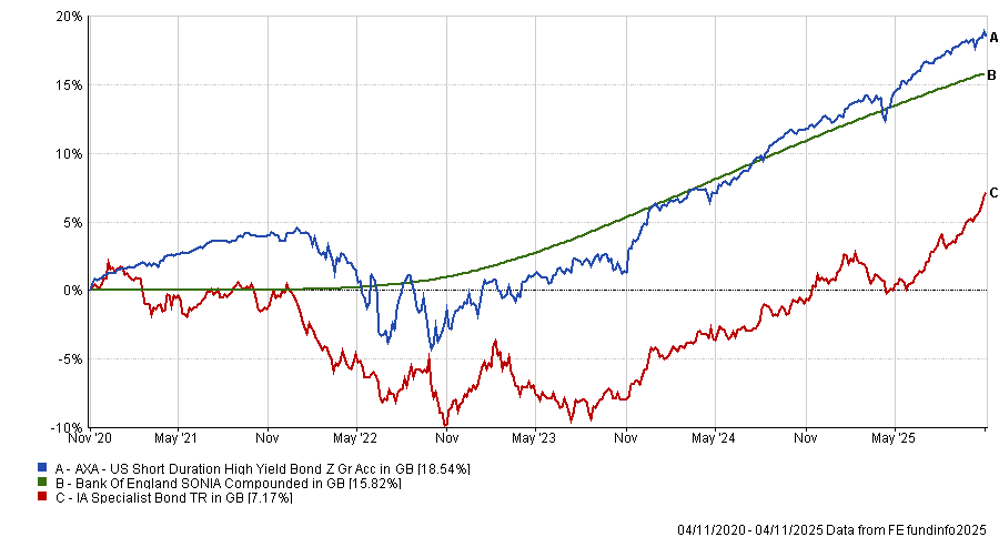 Over three and five years, this risk-averse approach has led to second-quartile returns in the IA Specialist Bond sector.