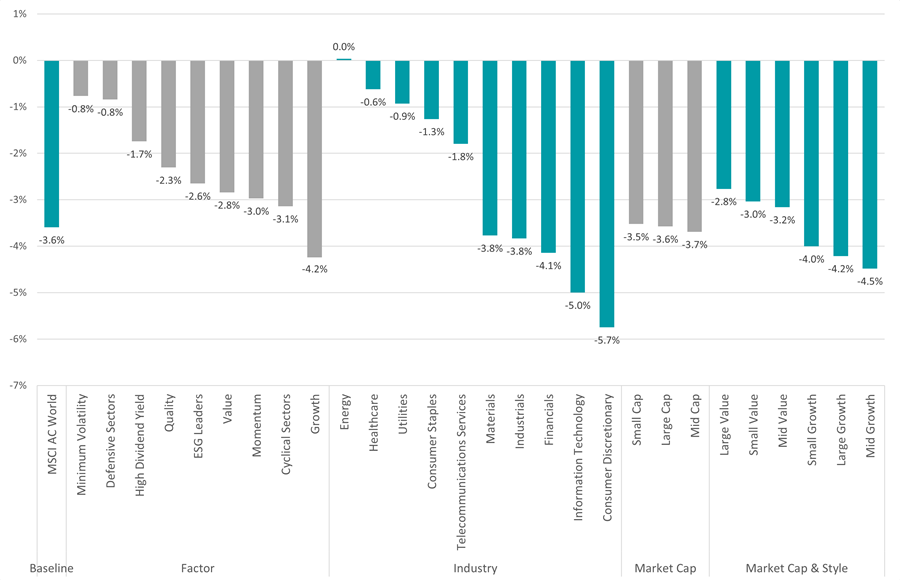 Performance of MSCI AC World and sub-indices since Wed 12 Nov