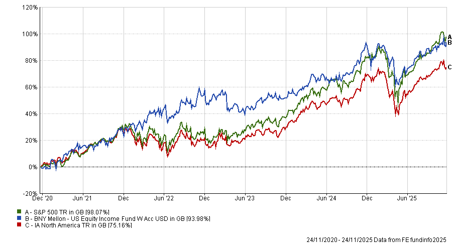 The highest five-year returns of the 11 were delivered by the $782.7m BNY Mellon US Equity Income Fund, which gained 123.5%. However, it was bottom of the table with an information ratio score of 0.5.