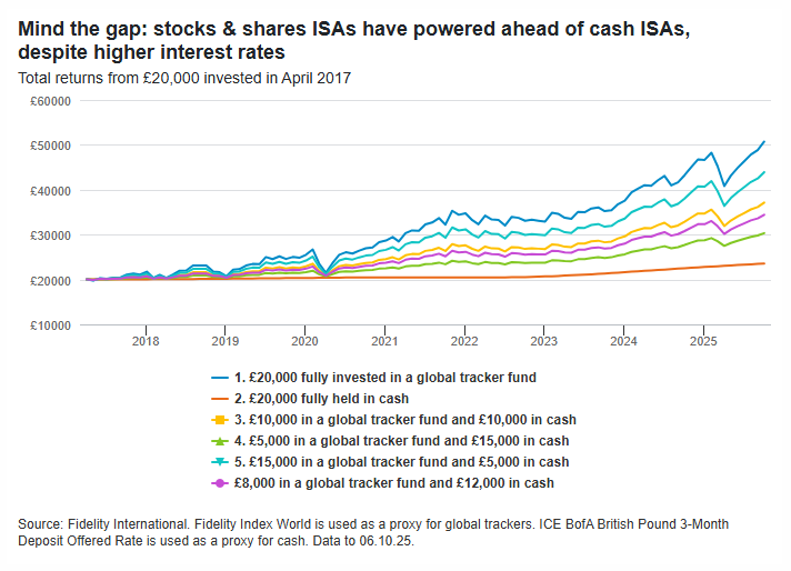 “While keeping money in cash can feel comfortable, over time it’s an almost guaranteed way to lose purchasing power. Inflation quietly eats away at savings and even the average cash ISA will have struggled to keep pace,” she added.