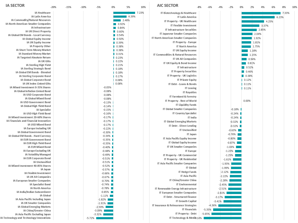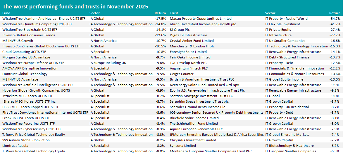 The worst average returns came from funds in the IA Technology and Technology Innovations sector and trusts in the IT Technology and Media sector.