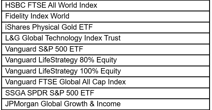 The most popular passive funds were ones providing broad exposure to companies around the world, gold, the technology sector and to the UK and US markets.