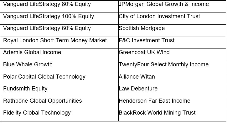 Broadening the scope of the list, AJ Bell identified the most popular active funds among DIYers, as shown below.
