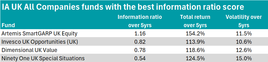 In the final part of an ongoing series, Trustnet identified funds in the IA UK All Companies sector with the highest information ratio score in the five years ending November 2025.