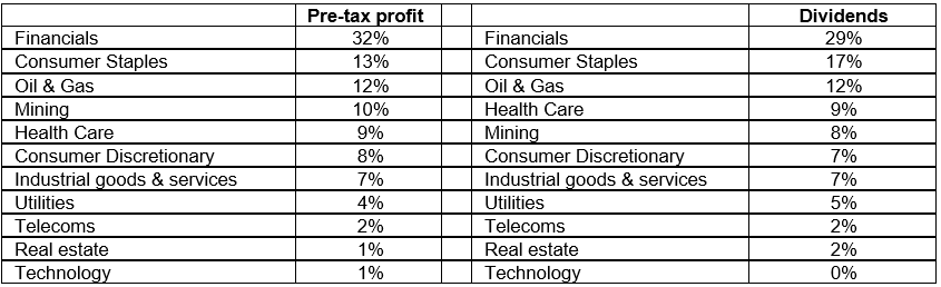 Percentage by sector for total FTSE 100 – 2026 consensus forecasts